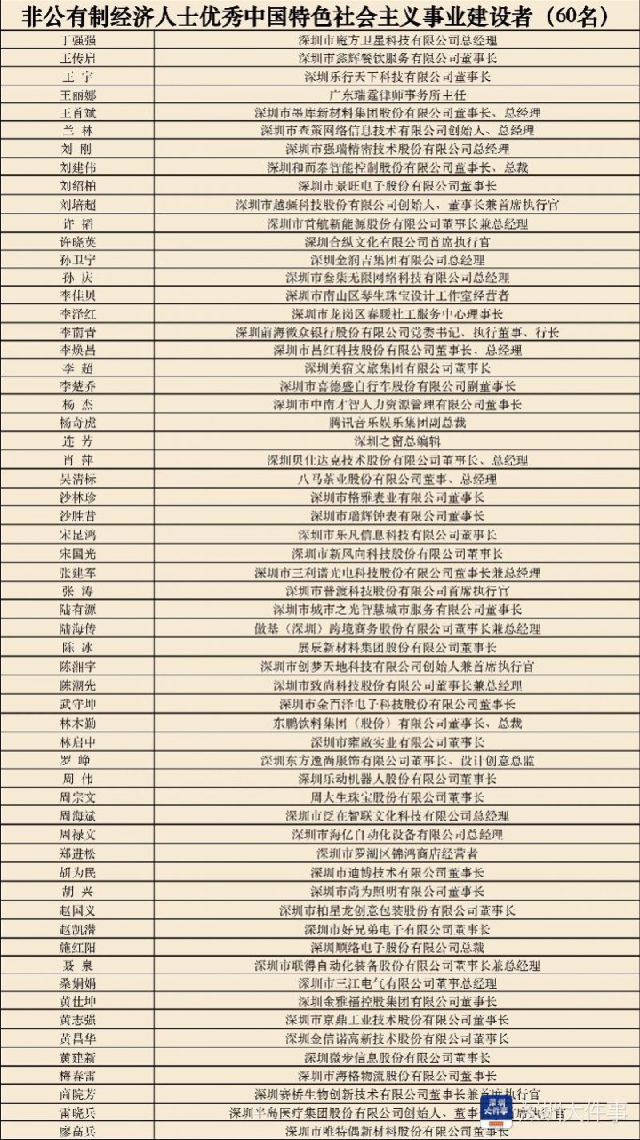 这是深圳首次以市委、市政府名义表彰全市非公有制经济人士优秀中国特色社会主义事业建设者暨光彩事业贡献者。